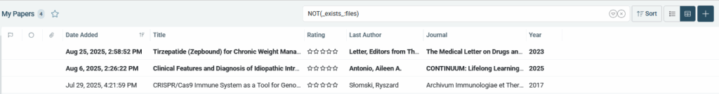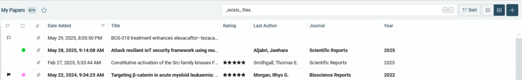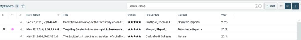 You can also use it to see all of your papers with a rating attached to them. _exists_:rating