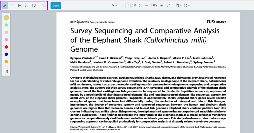 All annotations made in the PDF will be visible in the “Notes” section of the top left-hand menu