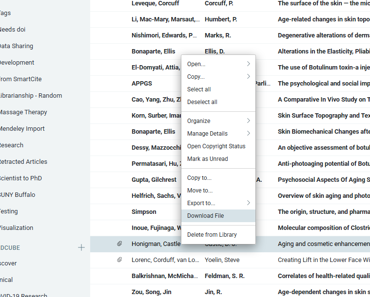 To export a single PDF file from the application, navigate to the reference in question, right-click on it and select “Download File”: