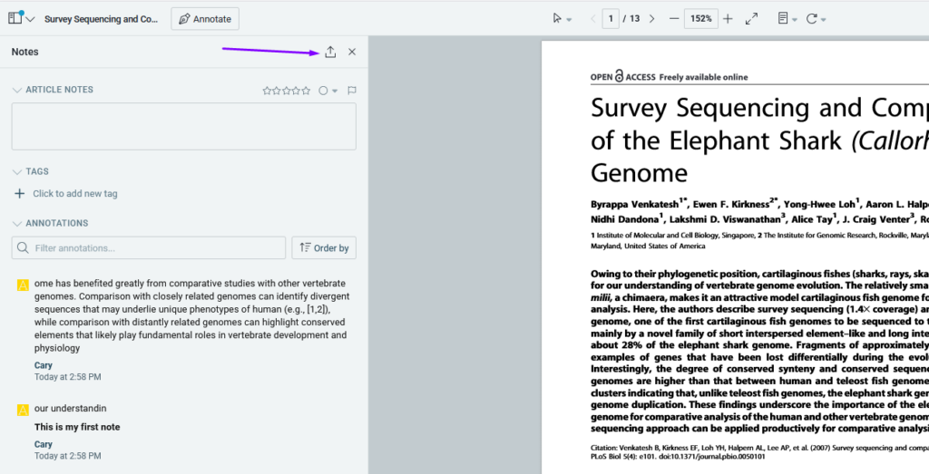 This feature makes it easy to back up or share your notes, improving your research workflow in ReadCube.