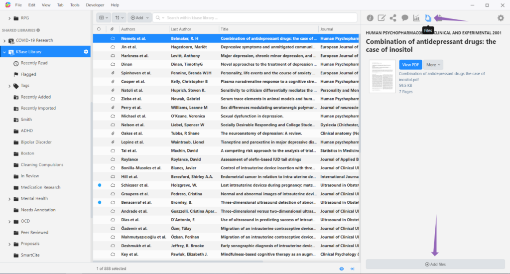 You can also manually attach PDFs (or supplements) by navigating to the “Files” section of a selected reference:
