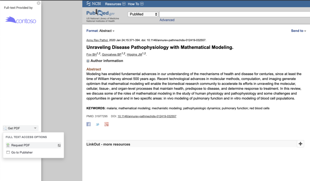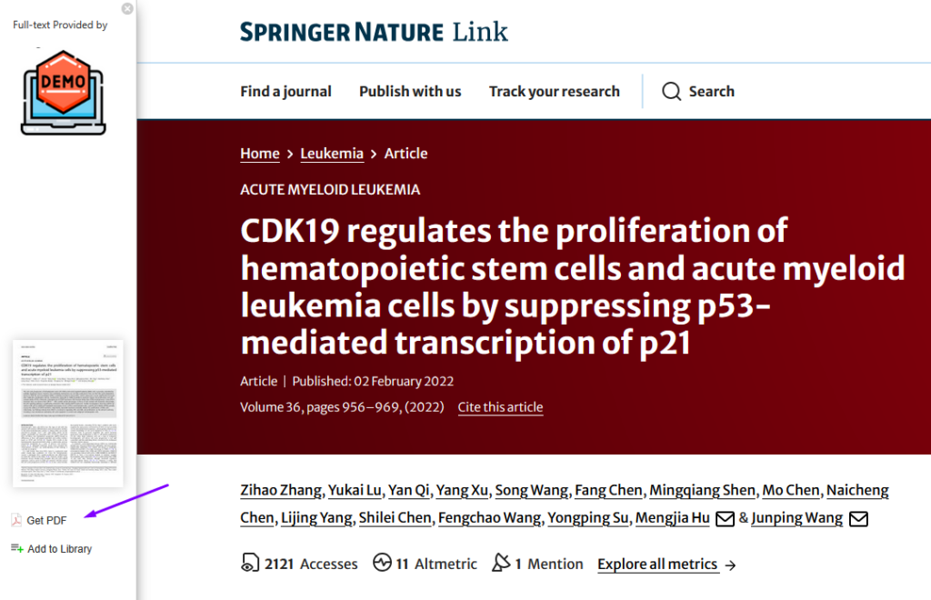 - On the publisher page, the browser extension will display a Get PDF option.