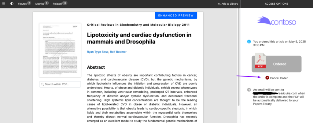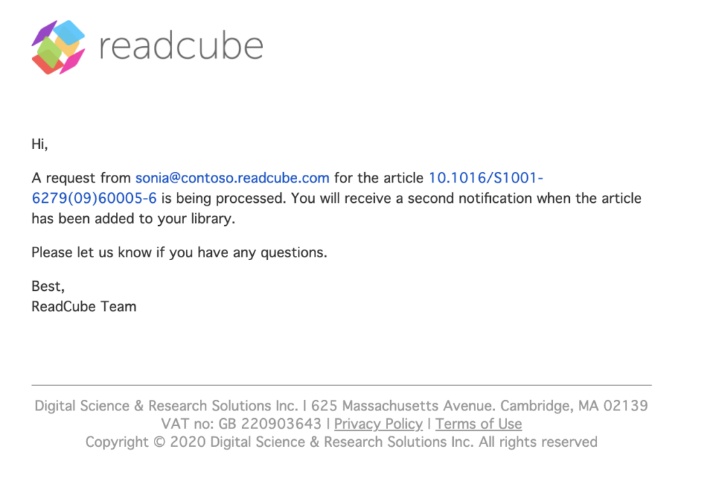- When the order is fulfilled and the PDF is available, you will get an email notification with a direct link to the article in ReadCube.