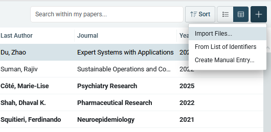 With the Mendeley desktop application installed, head to the ReadCube web application and click the plus ( + ) on the top right off the app, and select import files – Mendeley library