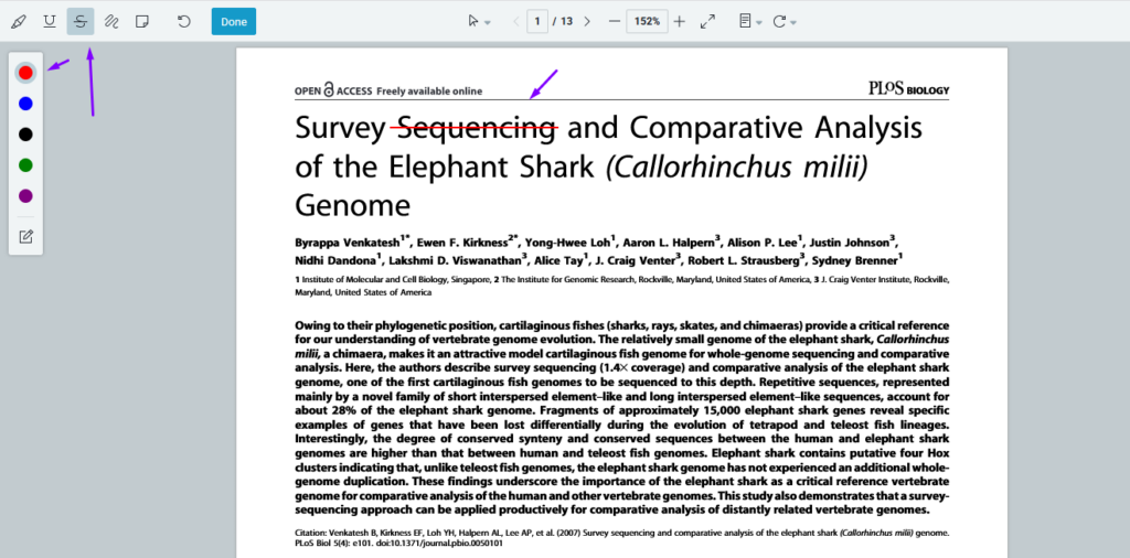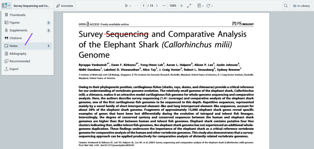All annotations made in the PDF will be visible in the “Notes” section of the top left-hand menu