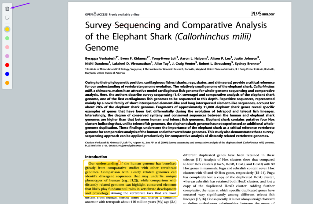 To delete an unwanted annotation simply click on it and select the trashcan icon option on the top left of the reader. Note, you’ll need to have “annotation” mode switched on.
