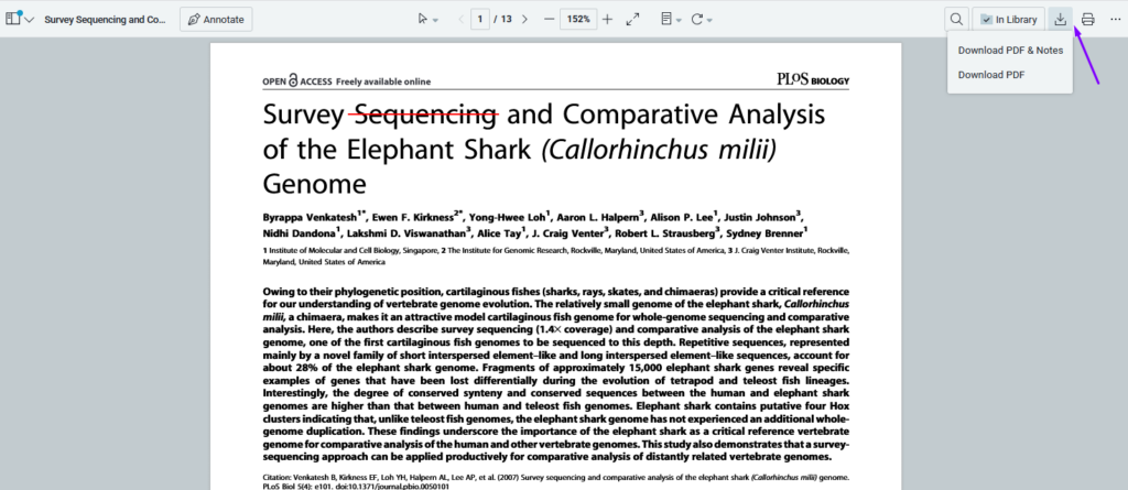 To download a copy of the PDF you are viewing – with or without any annotations you may have made – open the article in the Reader and click the “download” icon on the top right menu