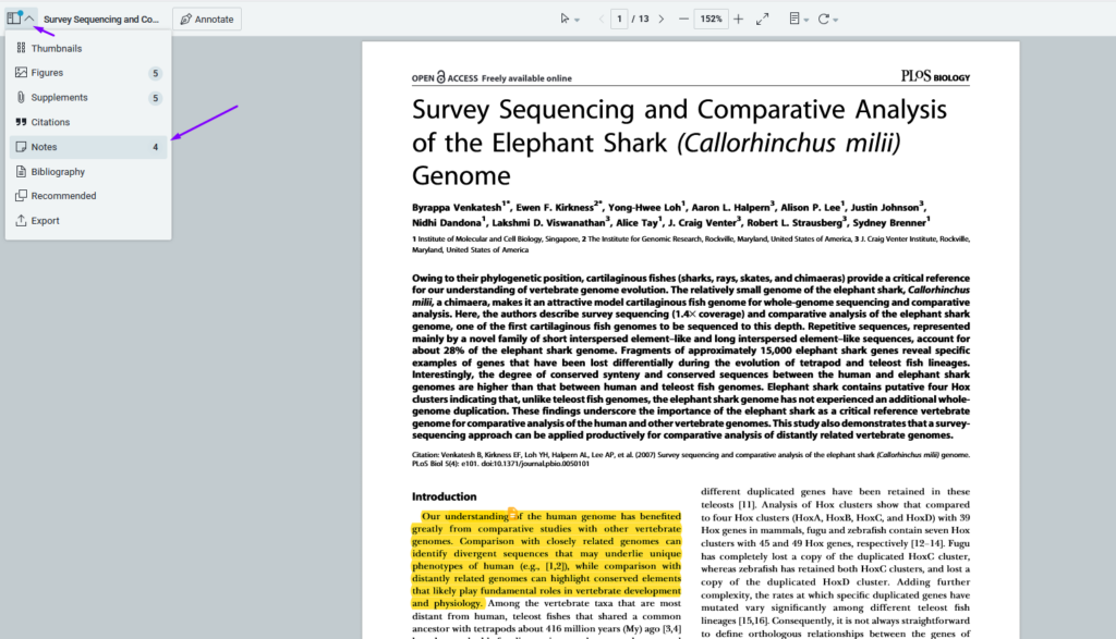 This feature makes it easy to back up or share your notes, improving your research workflow in ReadCube.