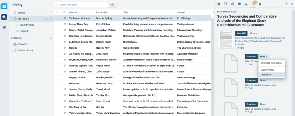 When you select a reference in your library, the right side panel will open. At the top of this panel is a number of options for the article, including the “Files” option. Select this option to see all files associated with that reference: