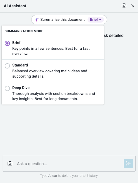 Enterprise users with access to ReadCube’s AI Assistant can now tailor how PDFs are summarized with new AI summary modes. The Summarize button is available wherever Chat with PDF is enabled, allowing a preferred summary depth to be selected before generating
